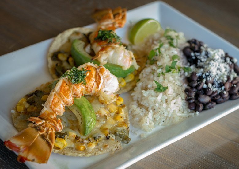 Charcoal grilled Maine lobster, peppers rajas, roasted corn, pepper jack & Chihuahua cheese, avocado, cilantro-lime rice, black beans, cilantro $30