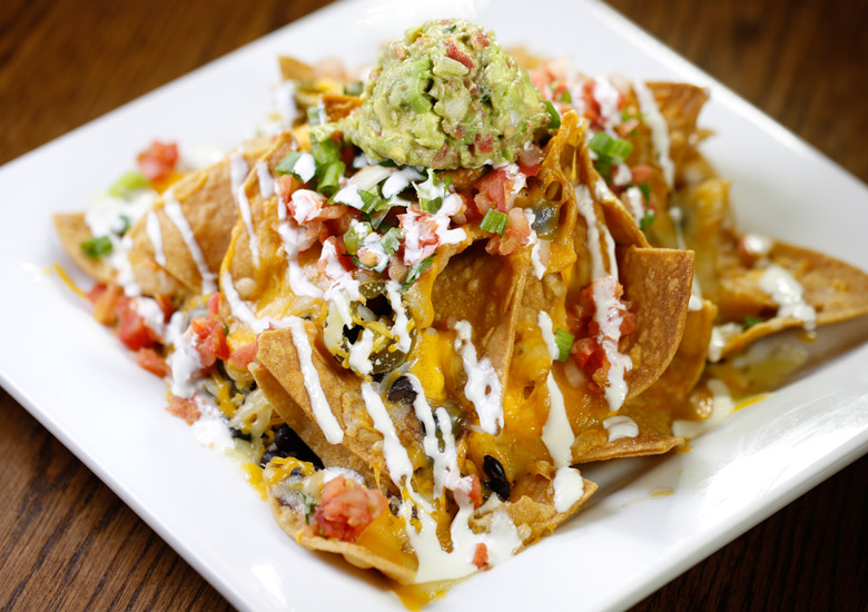 Pepper jack, cheddar & nacho cheese, black beans, pickled jalapeños, black olives, pico de gallo, scallions, guacamole, crema, salsa fresca
